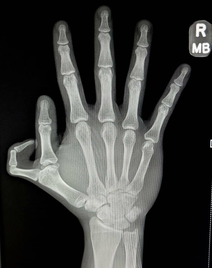 #7 My Left Hand Crushed From The Roof Of My Car After Flipping. X-Ray From The Night It Happened