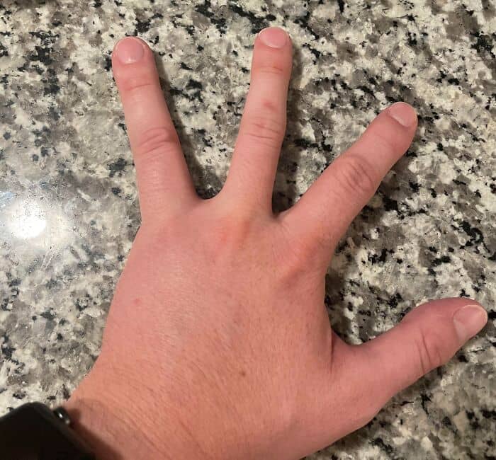 #57 My Hand Before Redial Fasciectomy. Cord Gone Going On 5 Years. Dupuytren’s Disease