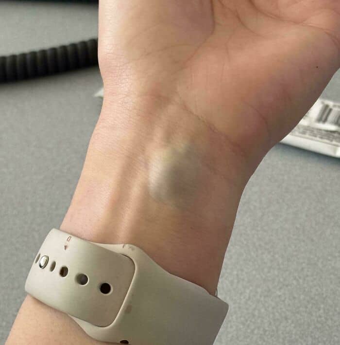 I started a job as a warehouse operations manager, and the hard work took a toll on my easy-to-bruise body. Of course I got the “maybe you forgot about hitting something” at first when I complained of spontaneous bruising. But after weeks, it took me looking like this to be taken seriously.