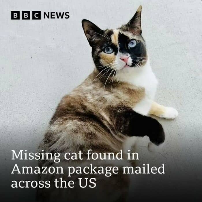 The Utah-based pet cat was rescued by an Amazon worker nearly a week after jumping into one of her family’s packages undetected.