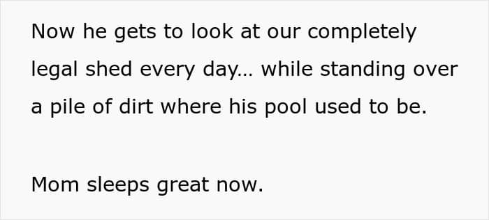In the story, the man attempted to frame the woman by claiming an “illegal shed” in their backyard. It was quite a serious accusation, and the mother could have faced a hefty fine.
