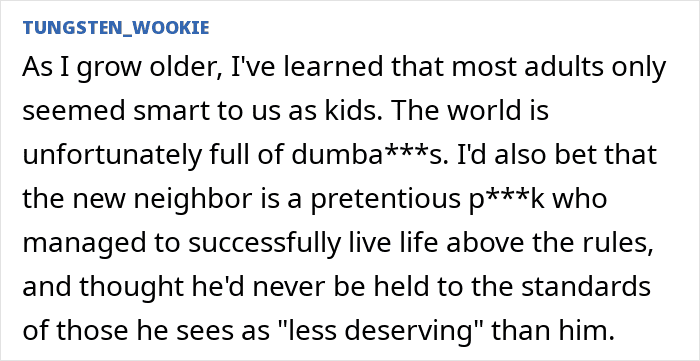 However, the man is a next-door neighbor and would likely try to pull a similar stunt again. The author took the necessary steps to establish boundaries, and it was effective.