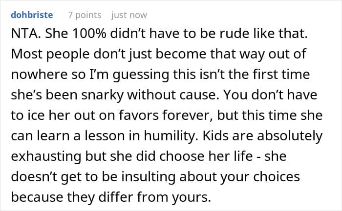 Fellow netizens didn’t think the child-free woman was being a jerk to her sister