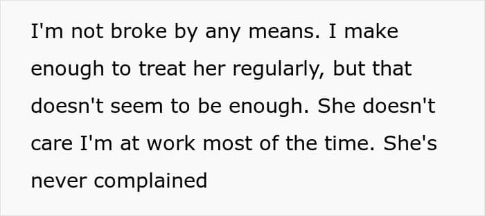 The OP noted that he wasn’t struggling financially. As a regional manager at a major UK supermarket chain, he works long hours and earns a solid salary, and always makes sure to treat his girlfriend often.