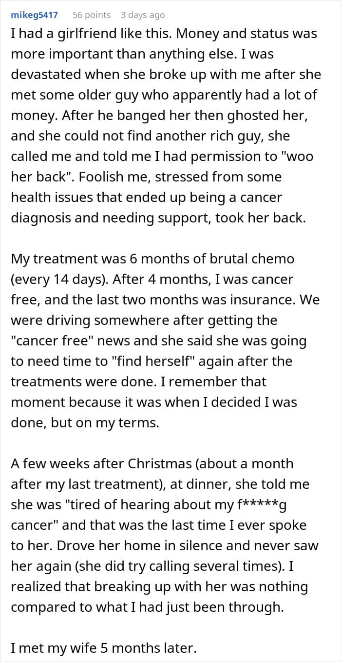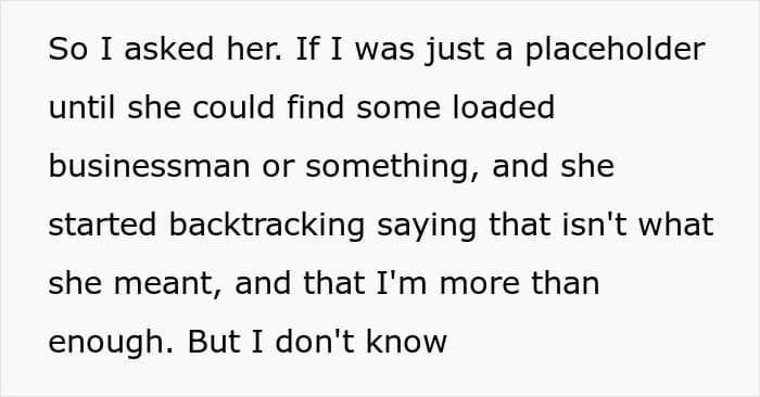What would you do if you were in the OP’s shoes? How would you react if your partner admitted they wanted to marry someone wealthy instead of you? We would love to know your thoughts!