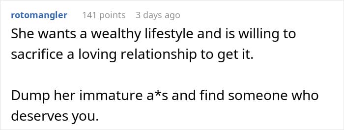 Netizens expressed sympathy for the OP and urged him to see the situation clearly. They framed the relationship as fundamentally unbalanced, warning that his girlfriend prioritized wealth over love. They also emphasized that he deserves someone who values him for who he is, not what he can provide financially.