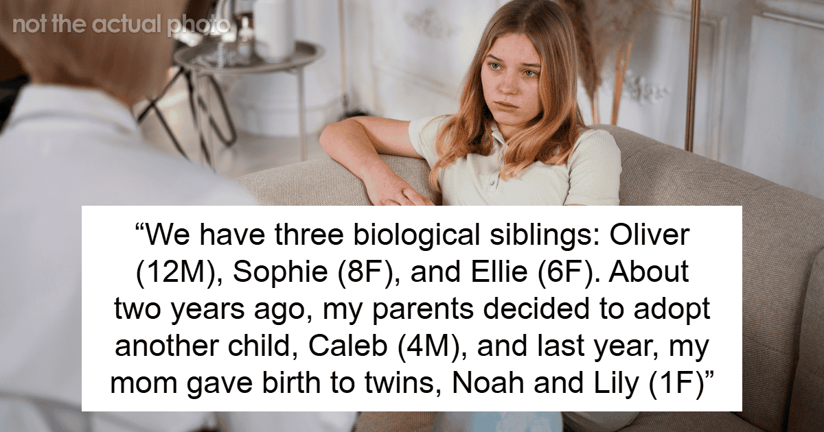 That makes 8 kids in total, and 2 exhausted teens basically running a daycare. Because when your “family duties” force your sister to quit her drama club and make you cancel plans with friends, it stops being “helping out” and starts being straight-up parenthood.