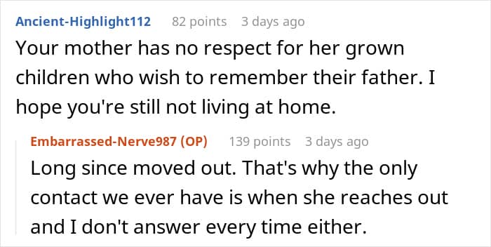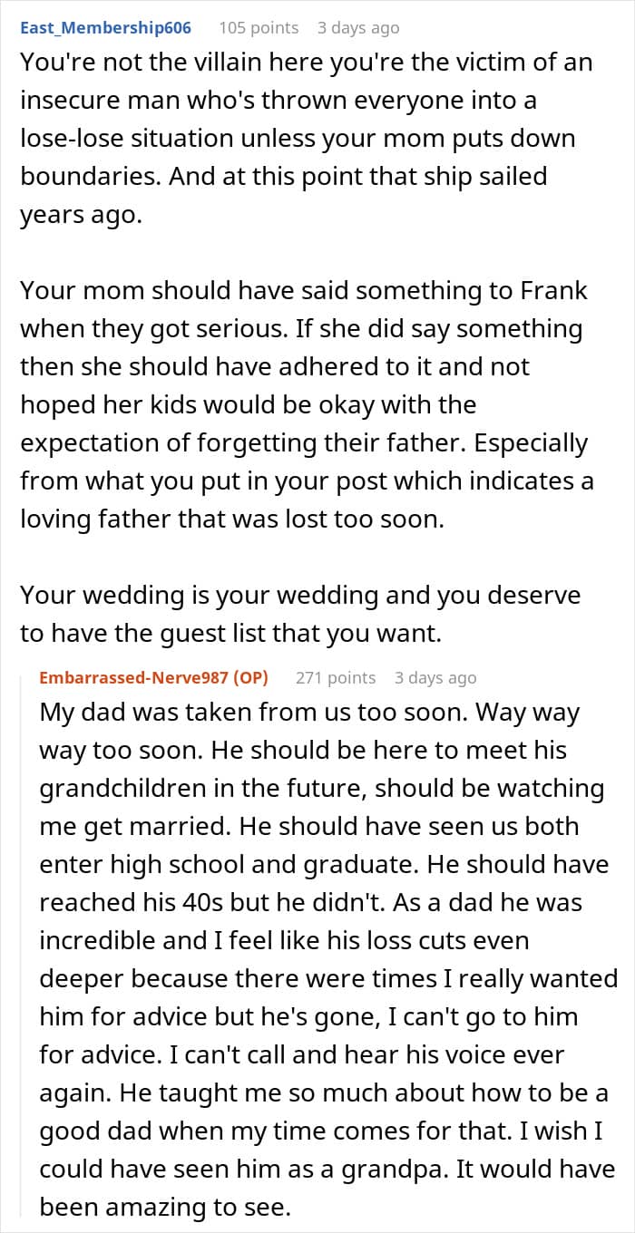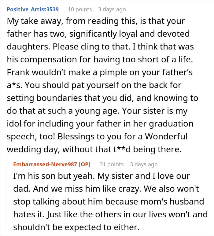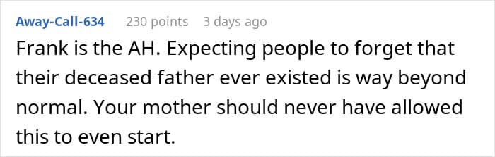 Like it happened with this stepfather who forcefully tried to replace his stepchildren’s biological dad and even erase his memory from the household. The children tried bringing up this issue with their mom, but she wanted to hear none of it, which pushed them to go no contact.