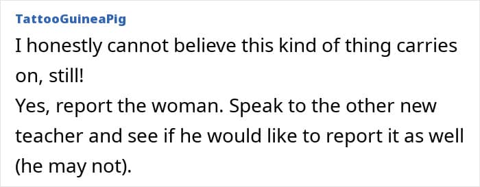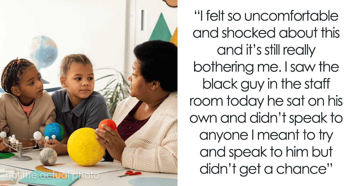 Who wouldn’t be? That’s a really terrible thing to say, and OP was worried that such a person is actually teaching kidswith different ethnicities. Besides, she also saw the new hire sitting alone in the staff room, not even speaking with anyone. Imagine facing such an atrocity right on his first day!