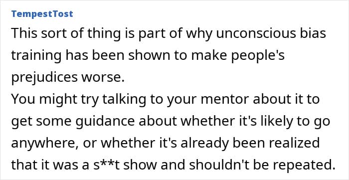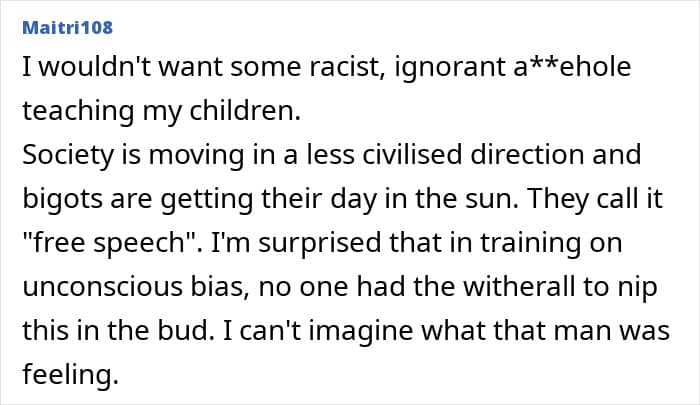 The poster was hired as a trainee teacher, and during induction, there was “unconscious bias” training after racism was reported in the school