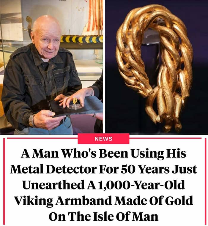 Ronald Clucas has been using his metal detector for 50 years and has found some incredible treasures along the way — but he just made his greatest discovery yet. While searching the Isle of Man, located in the Irish Sea, Clucas recently uncovered a section of a 1,000-year-old Viking armband made of gold. Made of eight gold rods braided together into an intricate pattern, this piece was undoubtedly the work of a master goldsmith. The other sections of the band had been purposefully cut off long ago, likely as currency in a trade of some kind, before the newly-uncovered section was carefully buried in what’s believed to be a sacrifice to the gods.