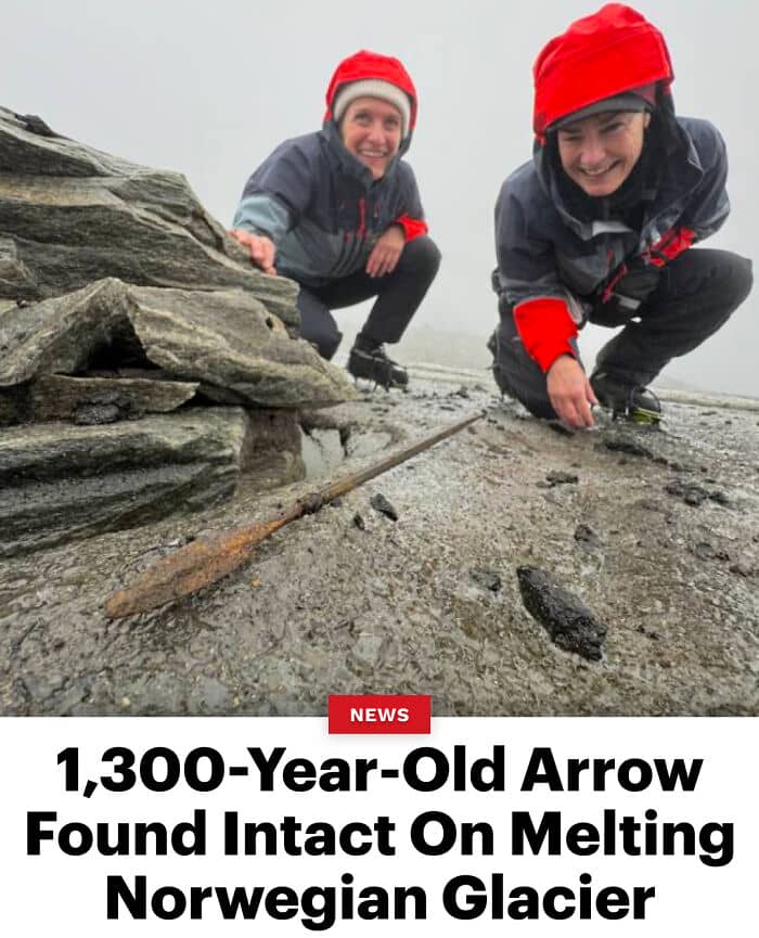 Archaeologists just made an “incredible” find on the surface of glacial ice in Norway: a remarkably well-preserved arrow dating back 1,300 years.