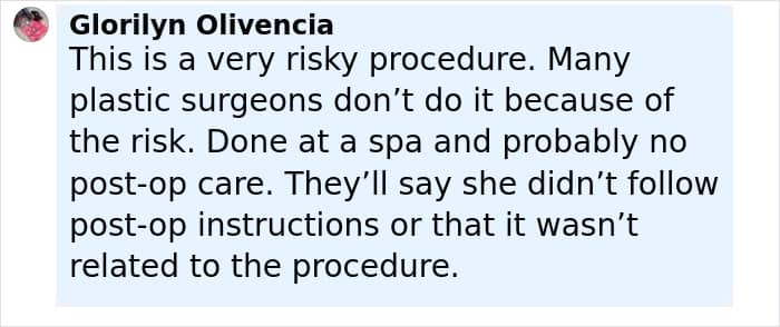 Jorge’s lawsuit was filed against A&E Med Spa, as well as Dr. Fermin Esteban Morales, the doctor who performed the BBLprocedure.