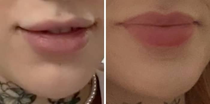 Wolfe opted for a lip flip shortly after the dissolving process and was happy with the results. About two weeks later, she shared a before-and-after comparison and said she “really liked” how her lips turned out.