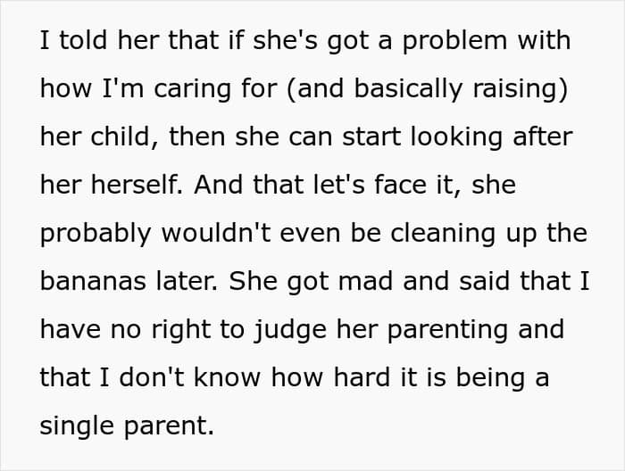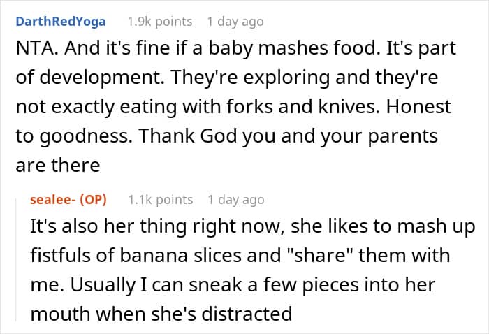He continues, “Appropriate boundary setting can include having the sister/ mother of the child ask for assistance every time it is needed so OP and the parents can choose when to help out or not. OP can also agree to not do any aid that the sister complains about unless she is not around and it needs to be done. As an example, wake the sister up to feed her child unless she apologizes for her comments,”