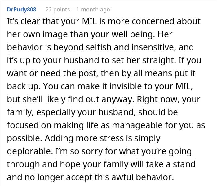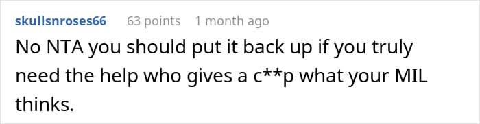 However, one person agreed with the MIL that the post was indeed tacky