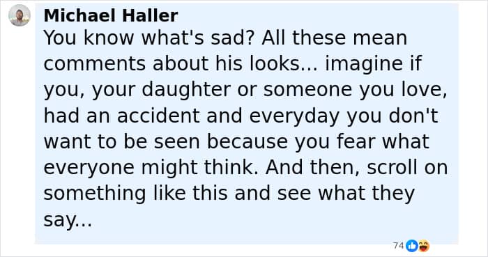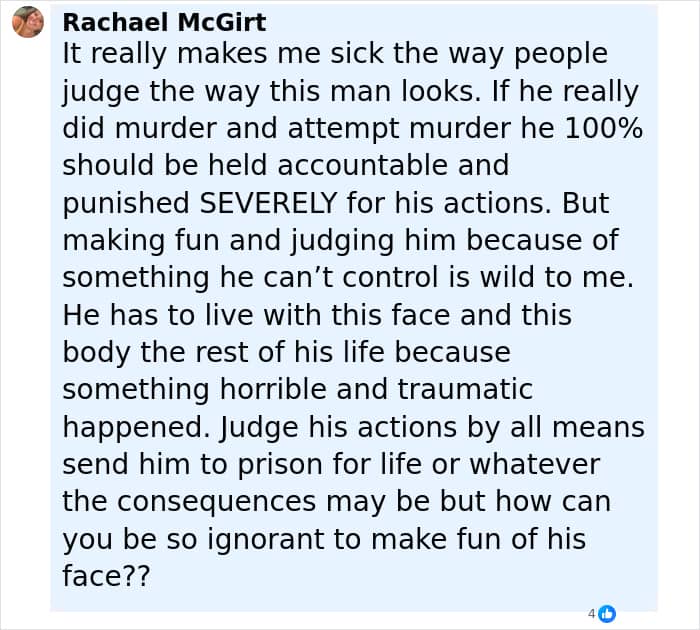 On social media, some users commented on the man’s appearance, which is the result of a burn injury.
