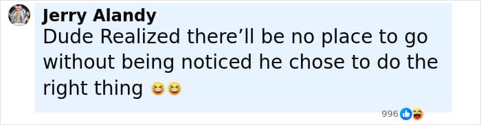 “Dude realized there’ll be no place to go without being noticed he chose to do the right thing,” an additional user pointed out.