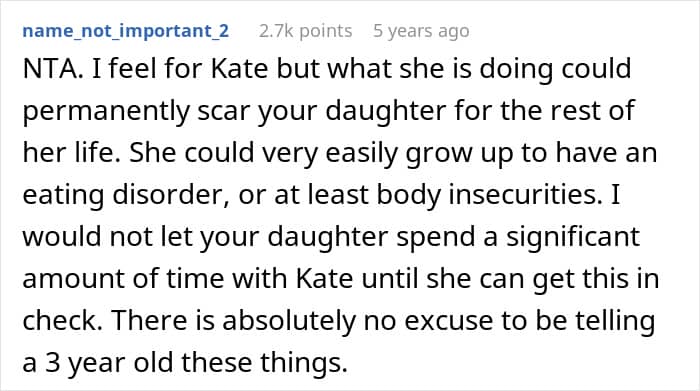 This left the OP horrified, but when he confronted the ex, she assured him she didn’t mean any harm and had made those comments during a hard day. He forgave her until his daughter returned after another weekend with the ex and declared that she wanted to be pretty and skinny like the ex.