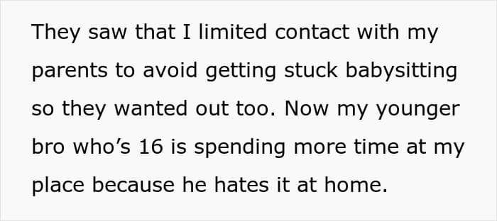 People in the comments, meanwhile, unanimously sided with the author and blamed his parents for being selfish and unreasonable