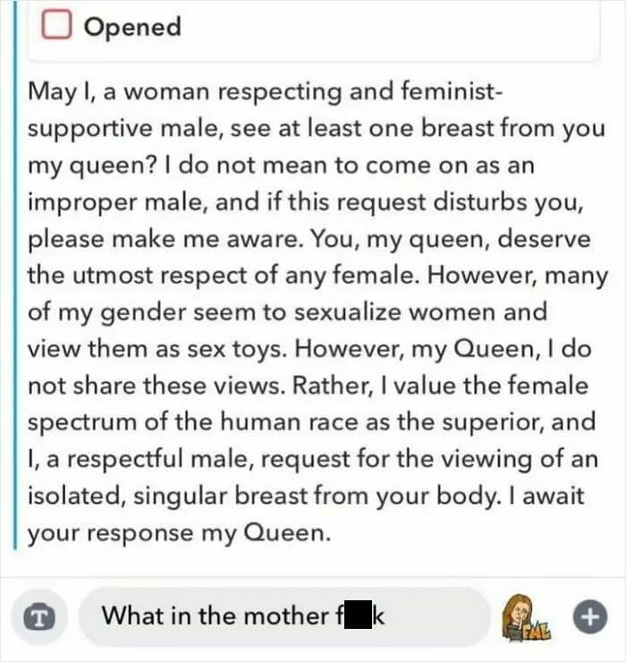 Cringe is as cringe does. Even though the internet is full of wonderful things like cat pics, wholesome local news, and articles written by yours truly, it’s also home to the vast and spooky wilderness where you’ll find the most bizarre and cringe-worthy posts. And it’s the members of the ‘Cringetopia’ subreddit that bears the heavy burden of documenting the cringiest examples to share (and publicly mock!) with the world. These cringetopians have a duty to show us what to never ever do while at the same time providing us with some hilariously weird content.