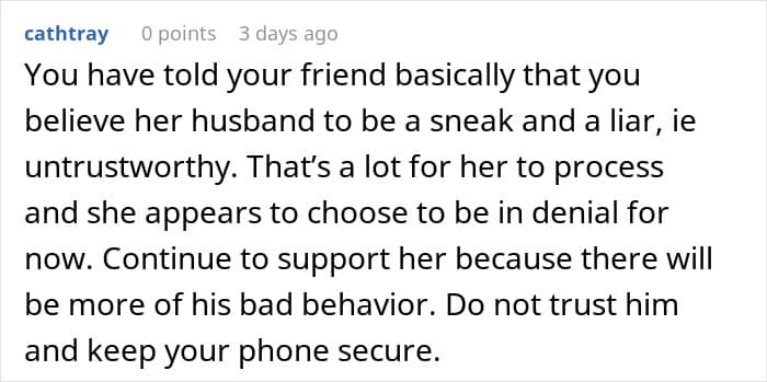 This woman learned her lesson after she left her phone behind at a friend’s house, where her buddy’s husband snooped through it, looking for who-knows-what. After realizing this had taken place, she confronted the couple about it, but none of them wanted to own up to it.