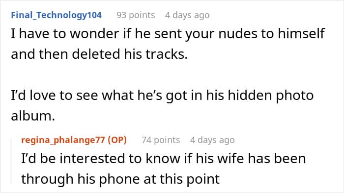 Readers proposed many interesting theories why the husband snooped around the woman’s phone