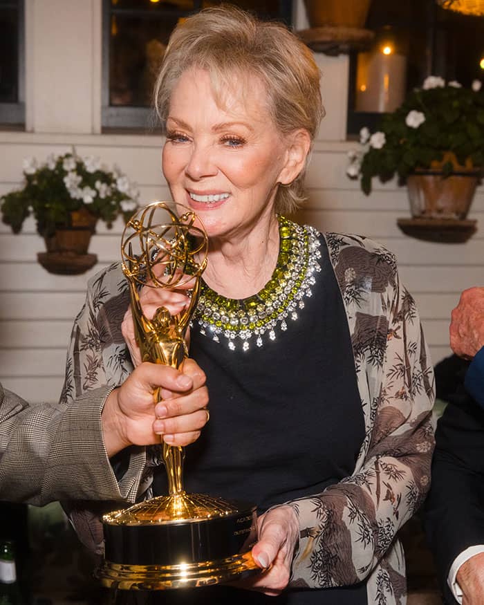 Hannah Einbinder served her after-party look while carrying her Emmy for Best Supporting Actress in a Comedy Series for her role on Hacks