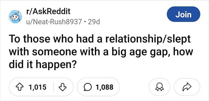 Either way, these Redditors decided to open up about their experiences dating someone much younger or older. Read their stories below to see who found lasting love and who walked away with heartbreak, and let us know what you think in the comments!