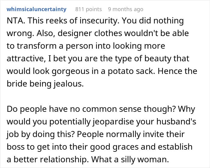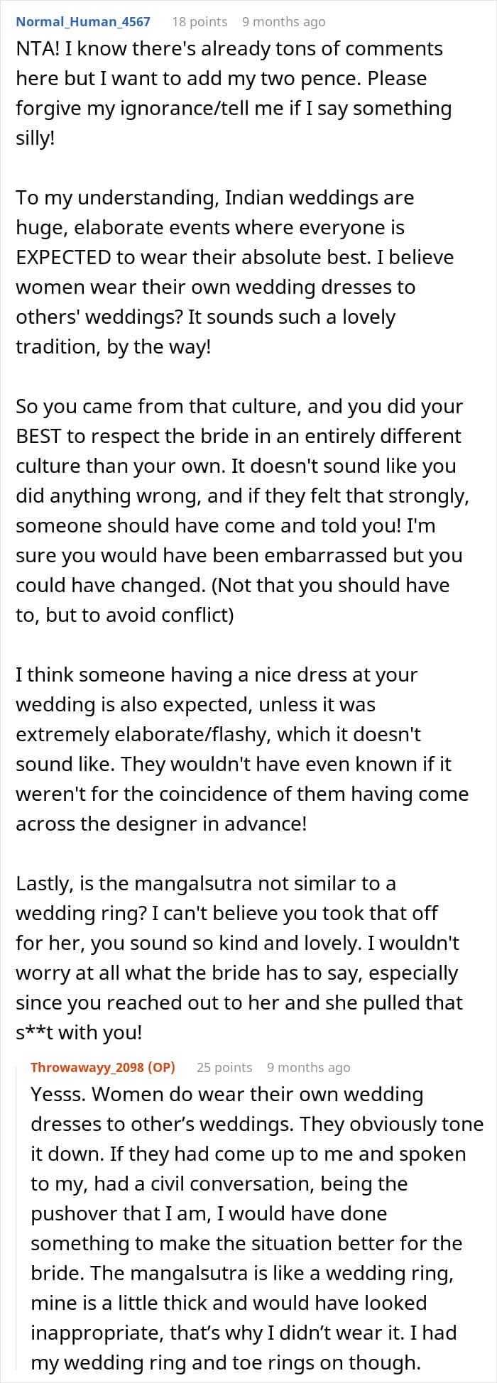 In the end, choosing what to wear to a wedding shouldn’t be a source of stress. A little courtesy and common sense usually go a long way. OP’s story may have taken a dramatic turn, but thankfully, moments like that are rare. Most guests just want to celebrate love—not compete with it.