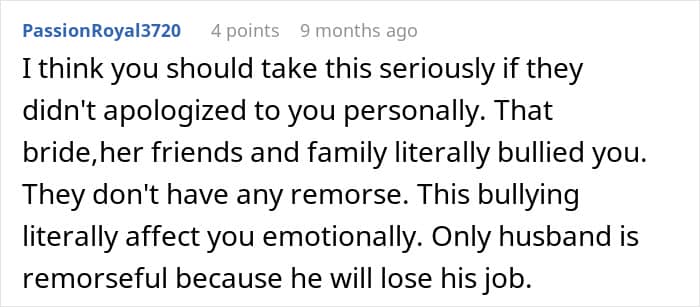 Commenters felt the bride’s response felt unnecessarily dramatic