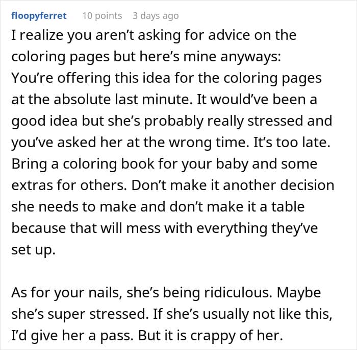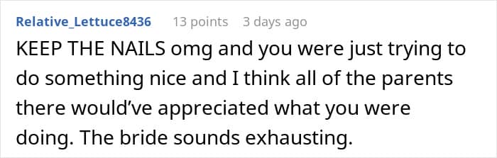 So one bridesmaid was surprised the bride seemed annoyed at her getting her nails done