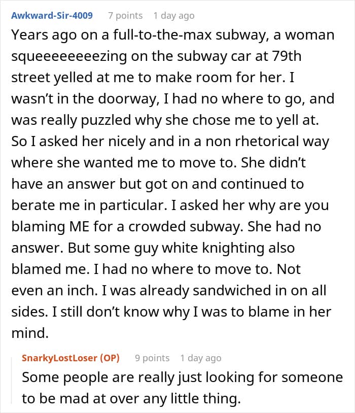The hero of our story today, the user u/SnarkyLostLoser, is a disabled middle-aged man, and he recently also took heat on a bus for not giving up his seat. However, the author had every right not to stand up, and this situation left him with nothing but sadness.