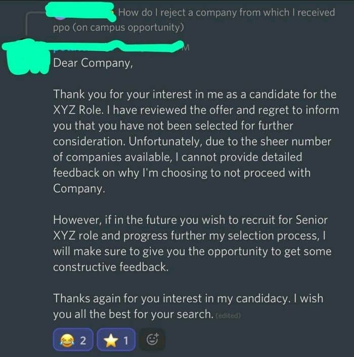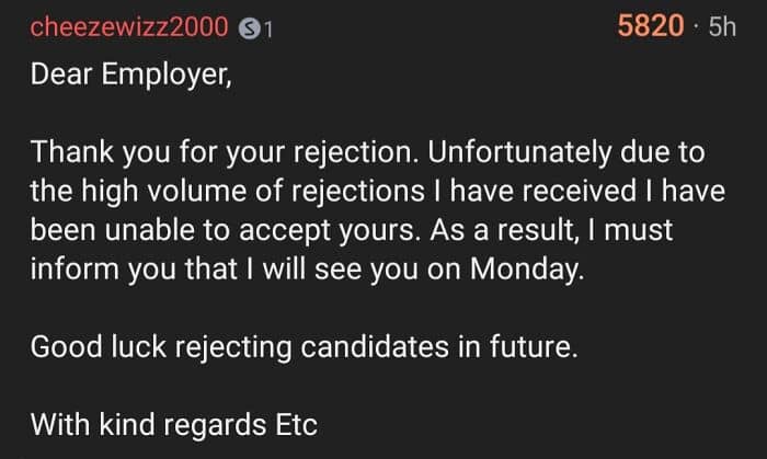 #2 Found This Funny (And A Bit Bitter) Comment On How To Answer A Work Application Rejection, So I Wanted To Share It With You Guys